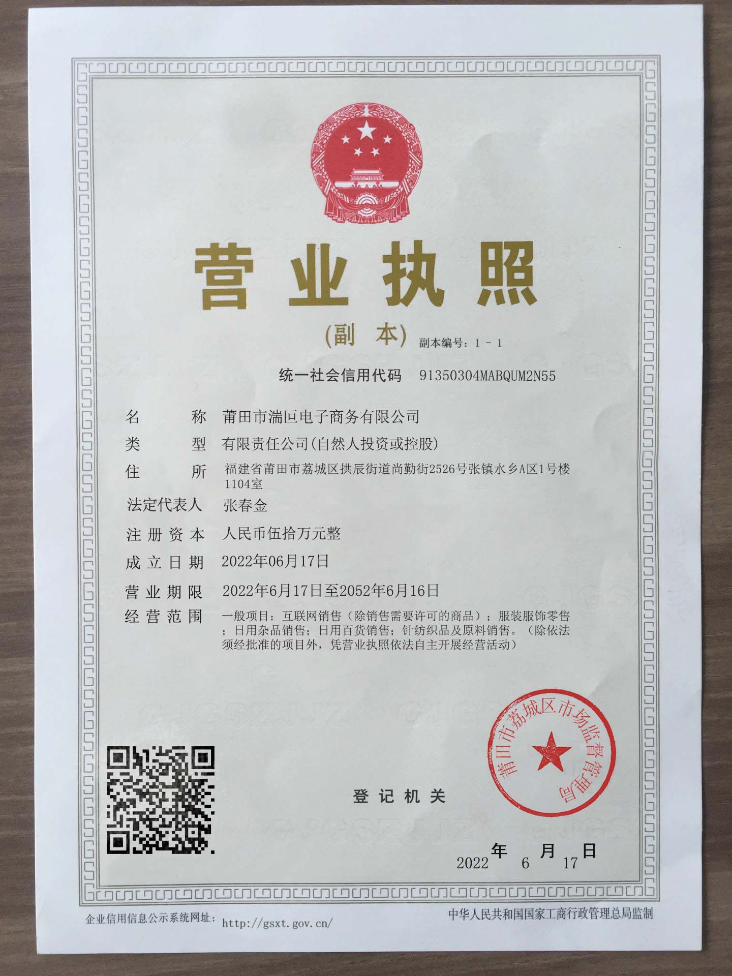 Corporate name:Putian Tuanpo E-commerce Co., Ltd